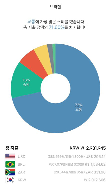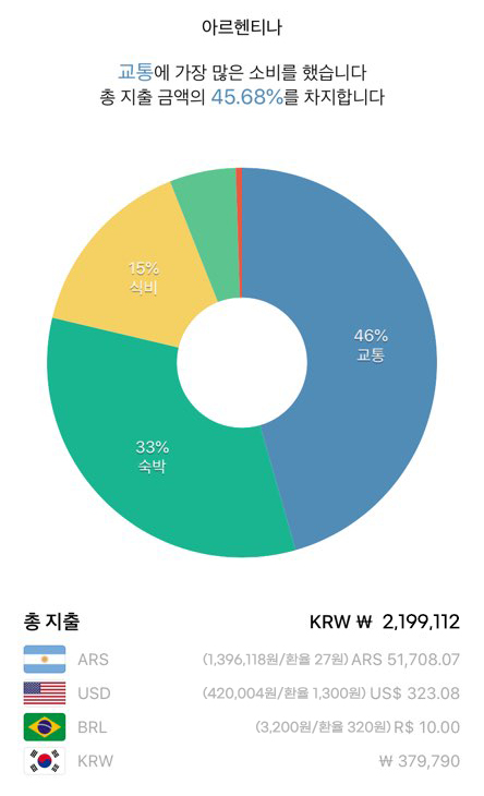 총 정산 비용은 2인 가격이며, 유럽 남미에선 주로 버스 이동을 하였고 숙박은 유럽에서만 한인게스트하우스를 이용했다. 나머진 웬만하면 1박 기준 3만원 언더의 숙소를 잡으려고 노력했지만 예산을 초과하는 숙소도 많았고, 물가가 저렴한 동남아 이외엔 대부분 간단한 요리로 끼니를 해결했다.