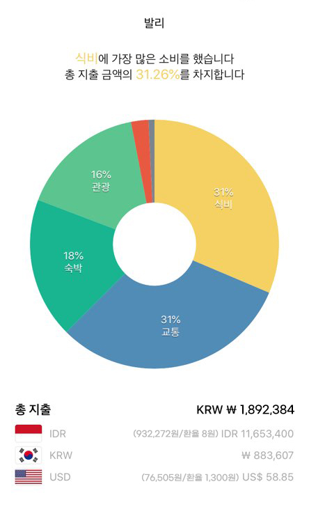 발리 물가는 한국대비 저렴한 편이라 9할 이상은 외식을 했다. 가장 많은 친구들을 만난 곳이기도 해서 식비를 많이 쓴 곳 중 하나다. 서핑하기 좋은 꾸따, 초록초록한 우붓, 거북이 천국이었던 길리, 도시적인 스미냑 한달을 지내도 모자란 곳